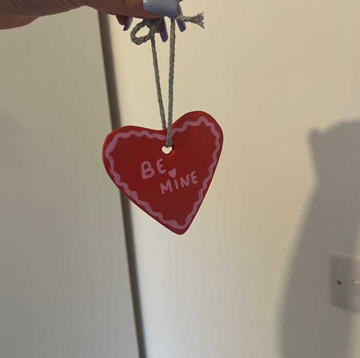 This is a handmade and painted handing heart decoration. Made from high quality air dry clay and painted using professional standard paints. Comes with sting to hang which can be removed should you wish.