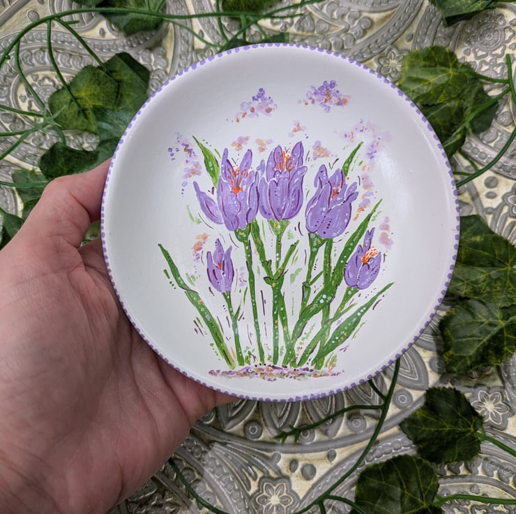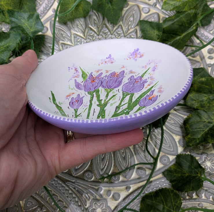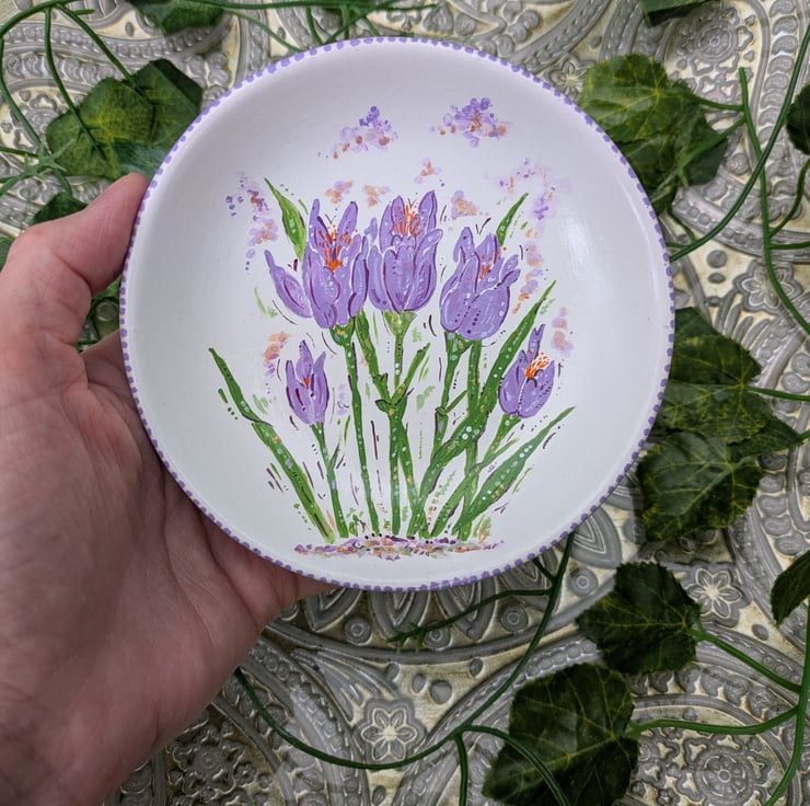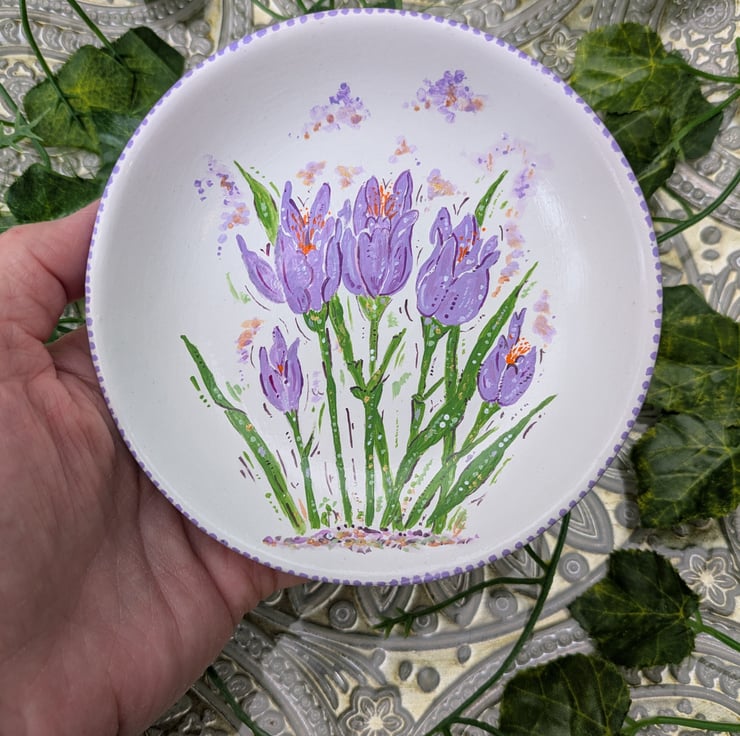 Crocus hand-painted ring, ewellery dish