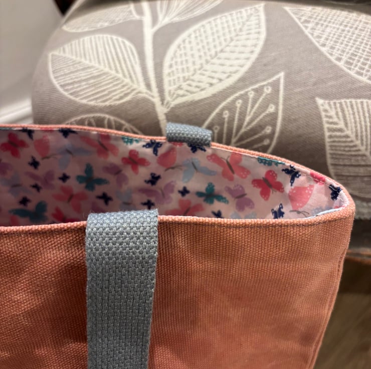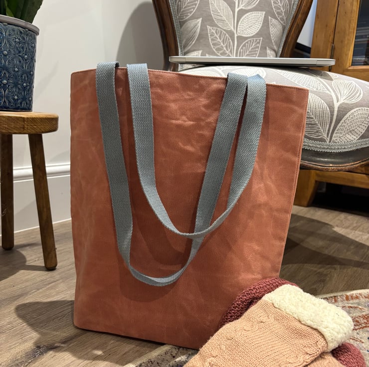 This classy tote bag is made from a waxed canvas with a pretty cotton lining. The waterproof qualities of the exterior make this tote bag ideal for the beach, but also classy enough for a work bag or day to day use. And perfect for the British weather!