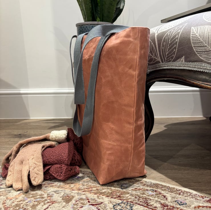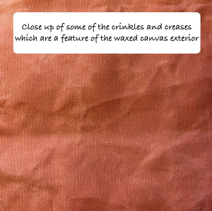 Waxed canvas is a strong fabric which is not only waterproof to all but the heaviest of downpours. It also has structure - so this bag will stand up by itself - there is no filling in the bag for the photos. The nature of the fabric means it crinkles and creases. These features can be reduced by using a hairdryer and hand smoothing, but they will are integral to waxed fabric and cannot be completely removed. They are what give this fabric it’s character.