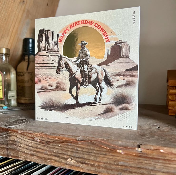 Handmade Happy Birthday Cowboy Card - Off White & Gold