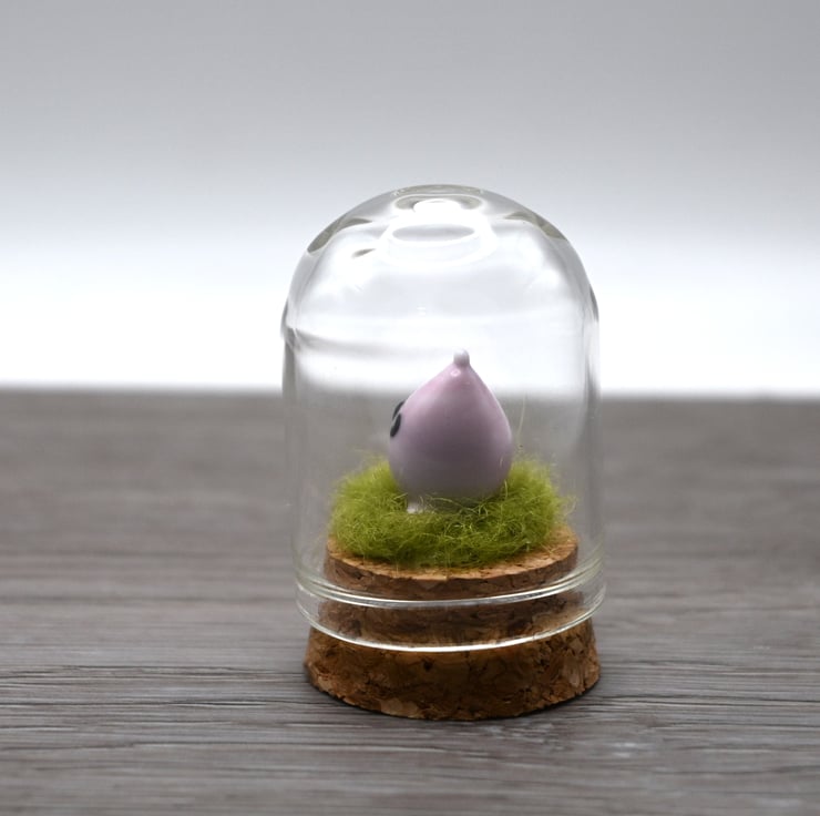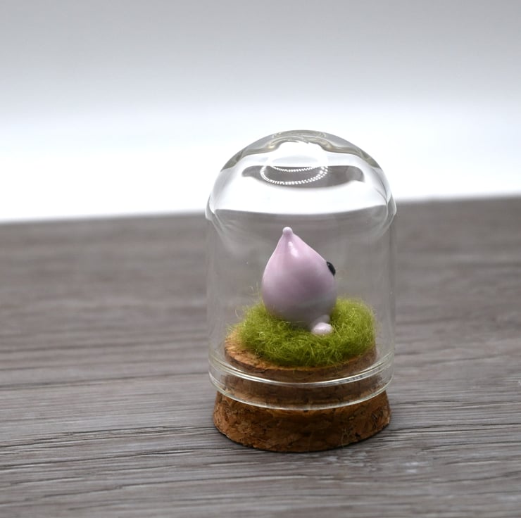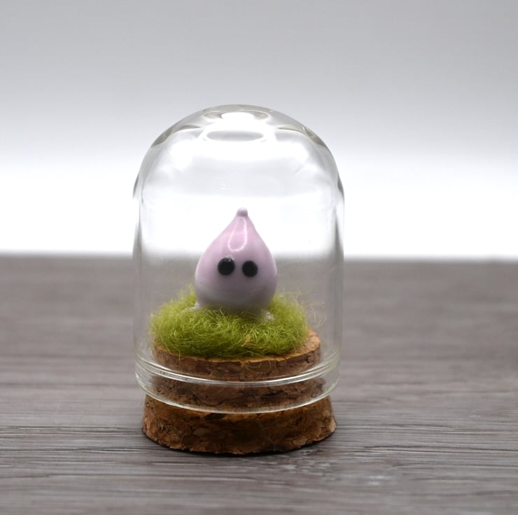 A small glass cloche jar with a cork bottom.