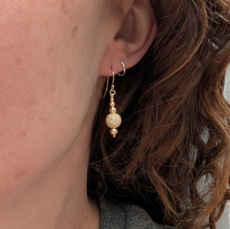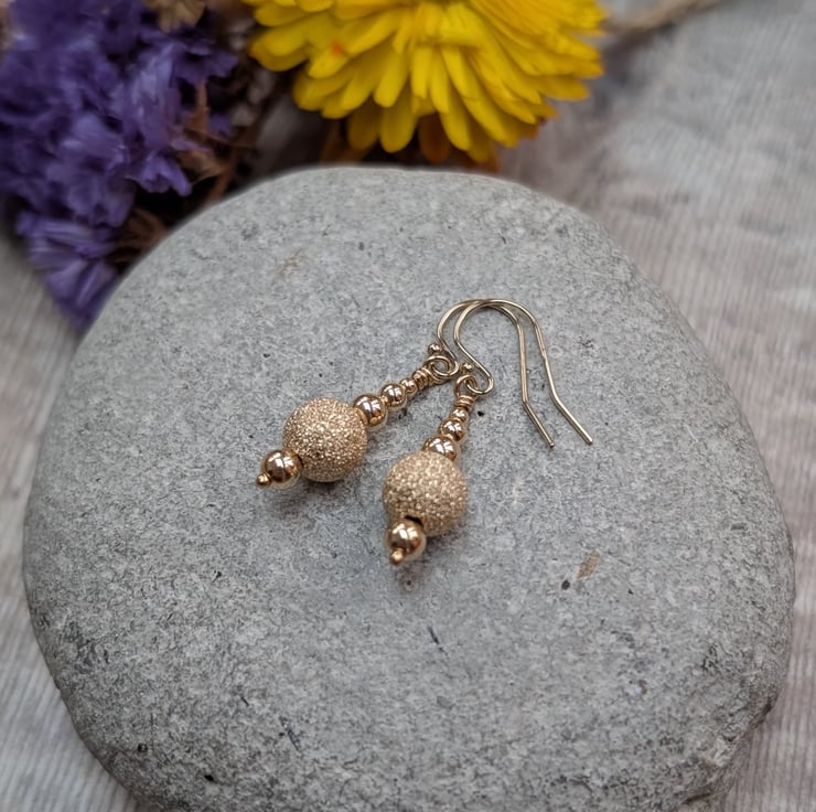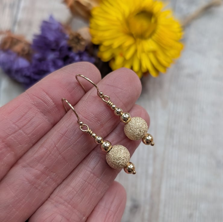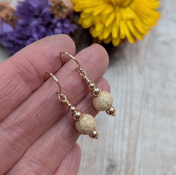 Gorgeous gold sparkle bead earrings, hand made from Gold Filled using traditional metalsmith techniques and given a shiny polished finish.