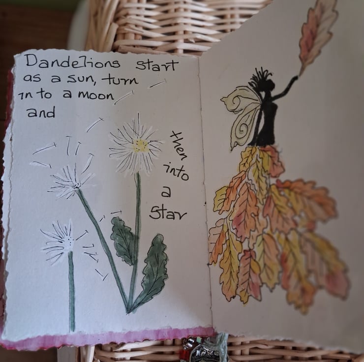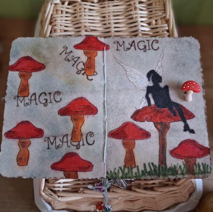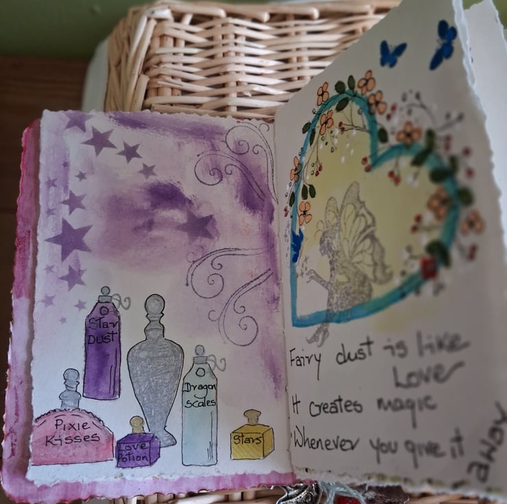 This beautiful book was made with a magical theme . Each page has a hand painted fairy or quotes. So if you believe in fairy's and magic then this a book for you.