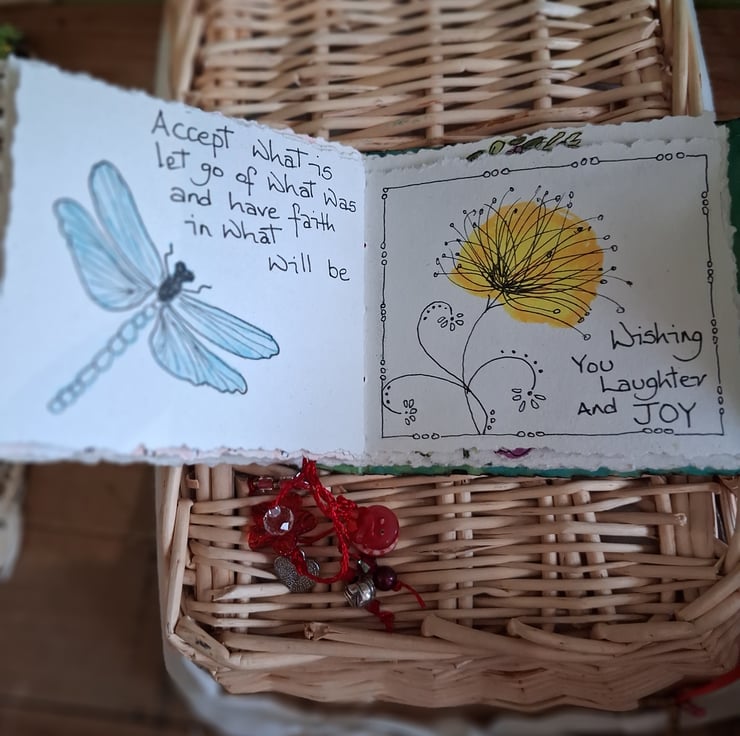 A beautiful 3 fold book depicting roses on the cover. All books are hand painted with approx 30 pages of quotes and illustrations of nature. You could place an order for these books with a personal message or quote Please message me with your own ideas and also allow 2 weeks for me to create a special gift for you.