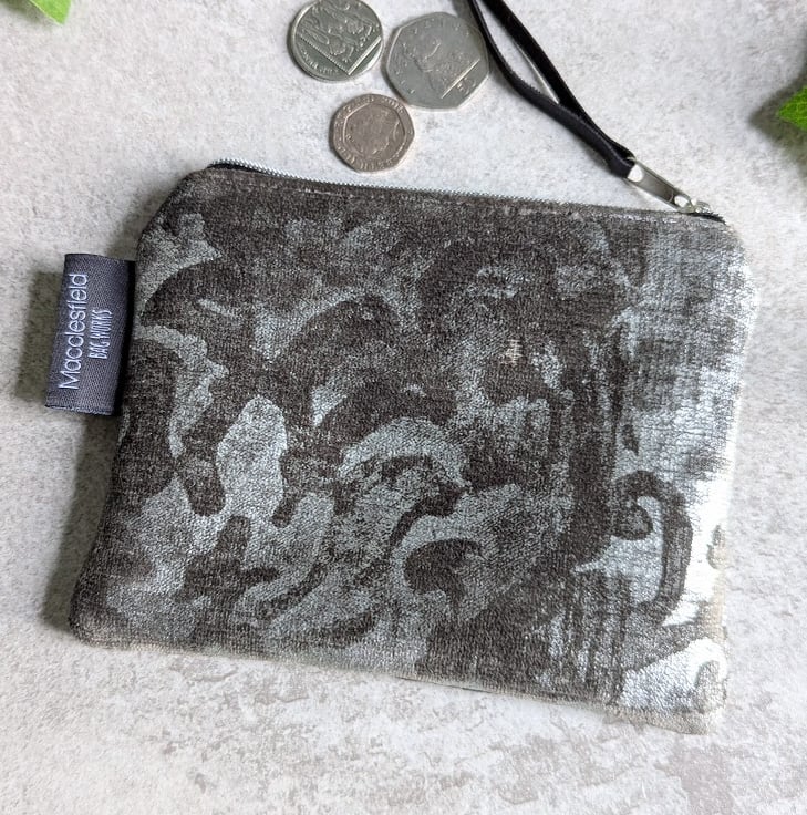 Shimmery and opulent, these silver and grey coloured chenille pouch purses have been handmade using a hardwearing upholstery fabric. A lovely little treat or valentines gift for someone you love (or maybe yourself!)
