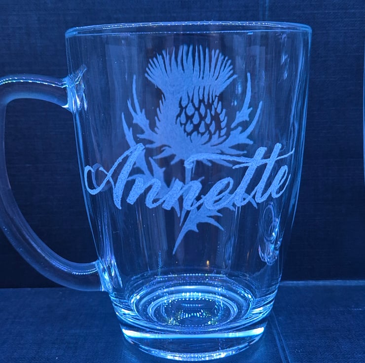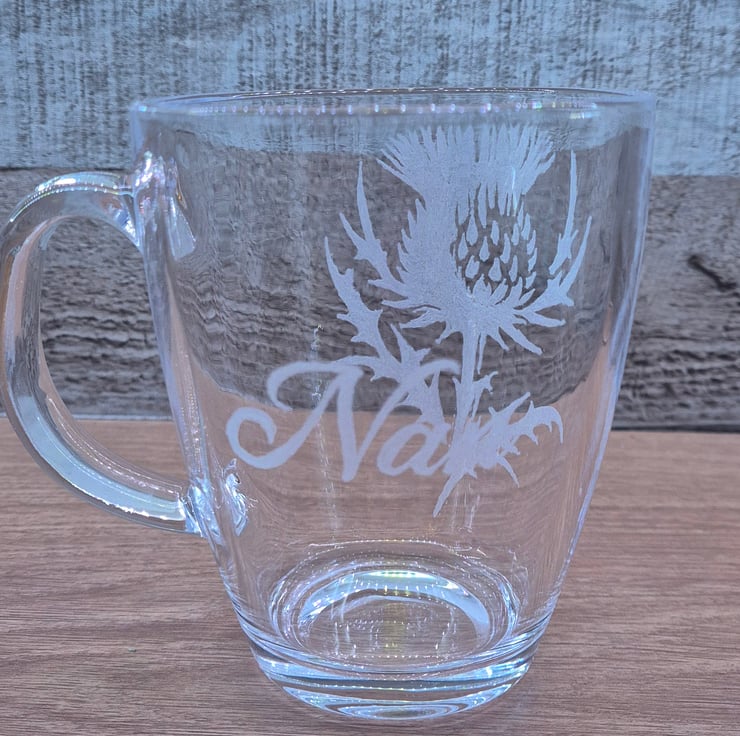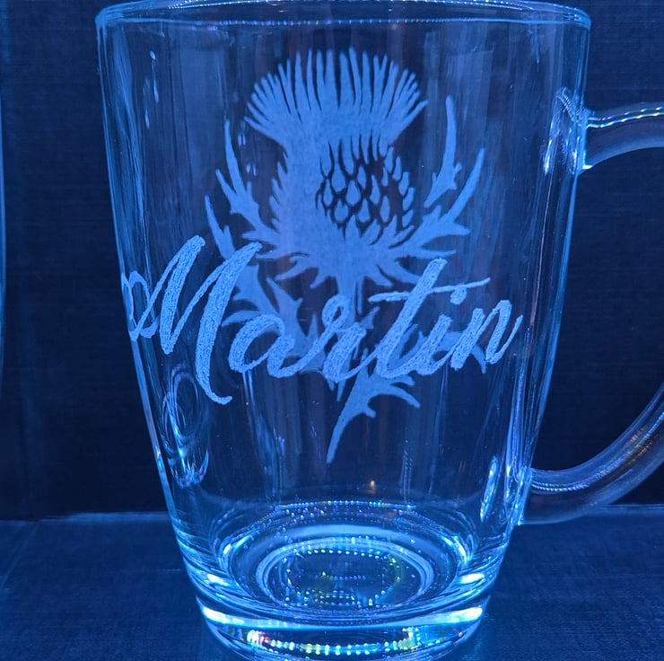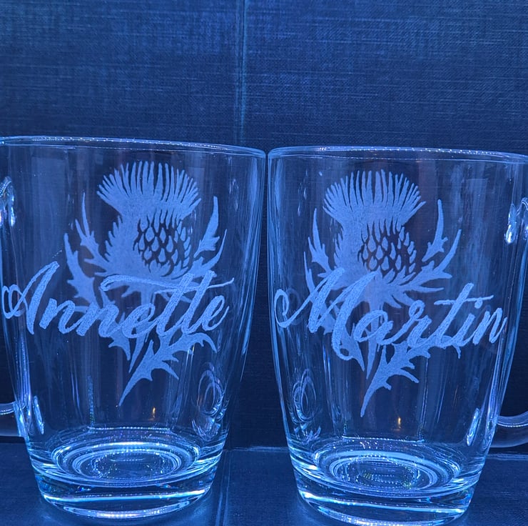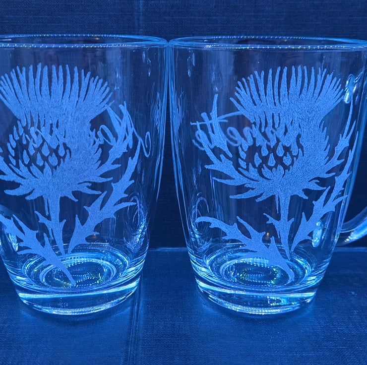 Set of 2 Thistle cups, personalised with a name on each.