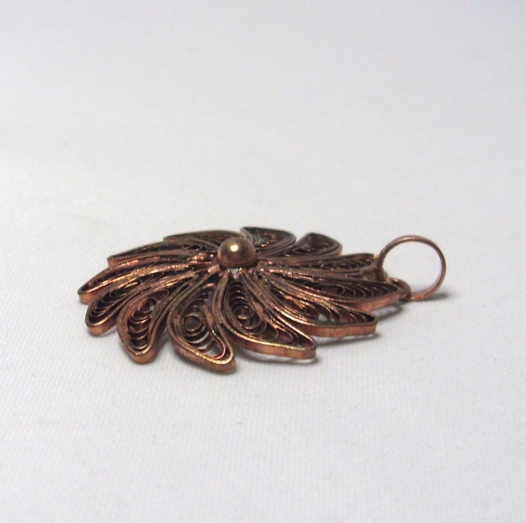 Copper filigree swirl necklace pendant