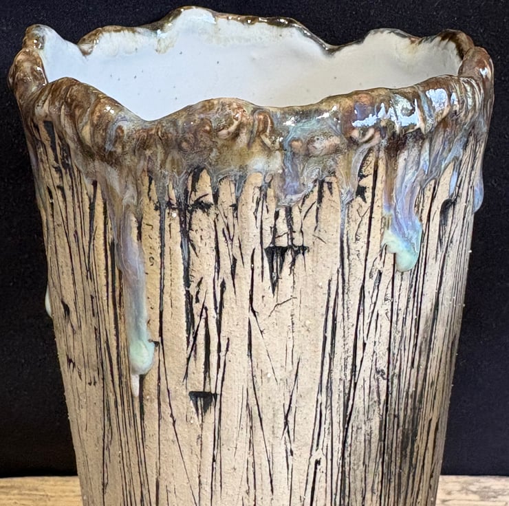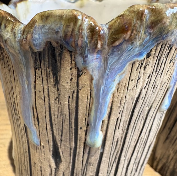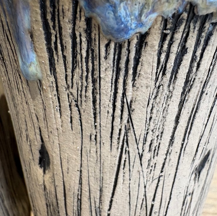 These 'frosted' vessels were made as part of a collection of work for a London Potters and Sogetsu School of Ikebana London Branch (SSILB) Exhibition on 1st November 2025 representing winter in the form of a tree trunk - inspired by the stump of a tree I see on my walk with our dog each morning.