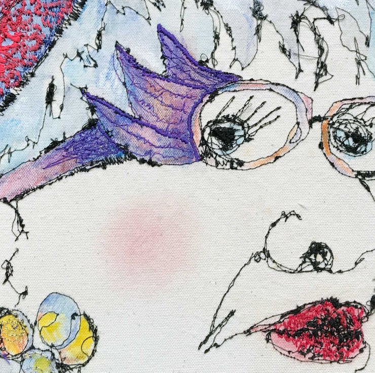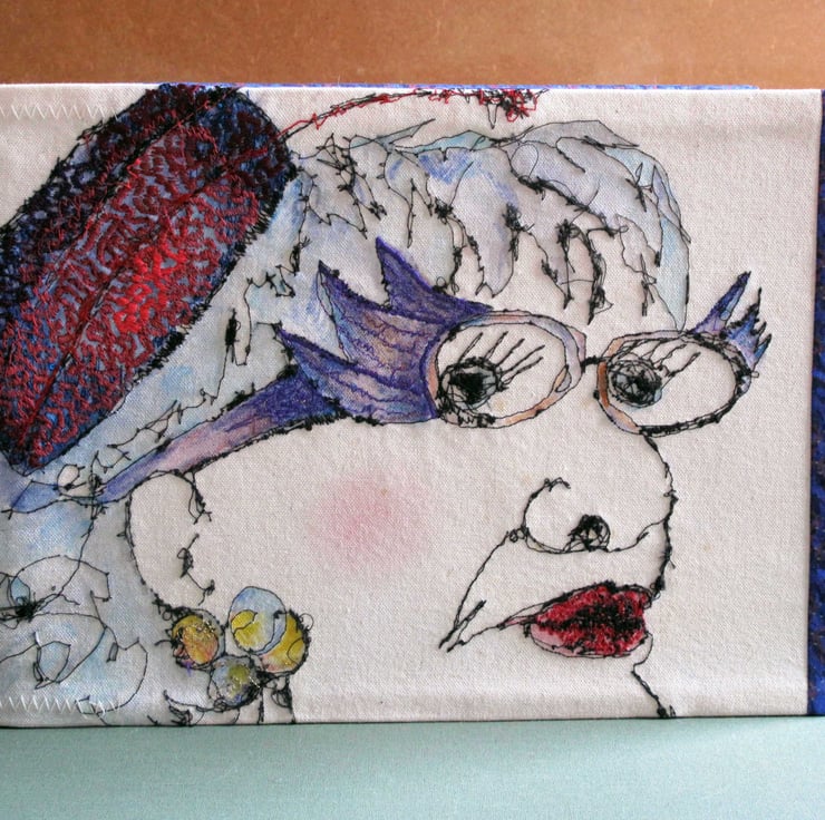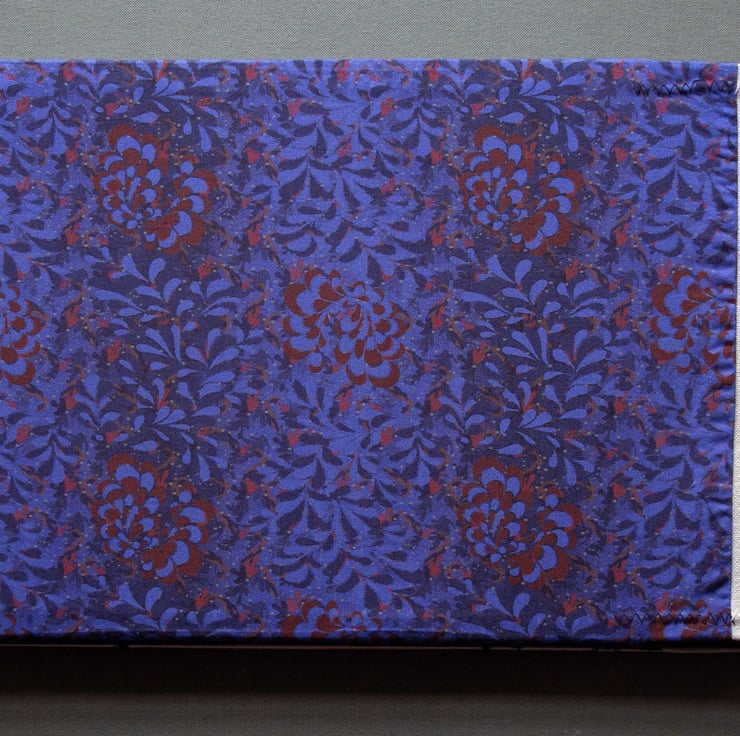 The cover is unique and hand made to fit the A4 book. The fabric is painted and machine embroidered. It can be removed and put on another book of the same size.