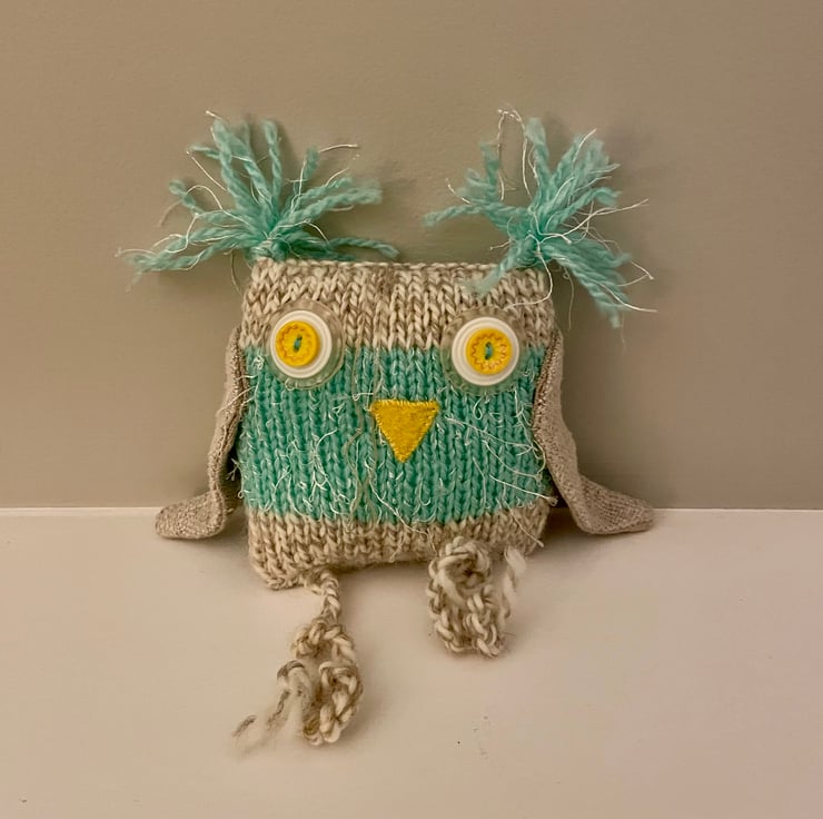We use upcycled yarns and fabrics to make our owls and as they contain small parts they are not suitable for small children.