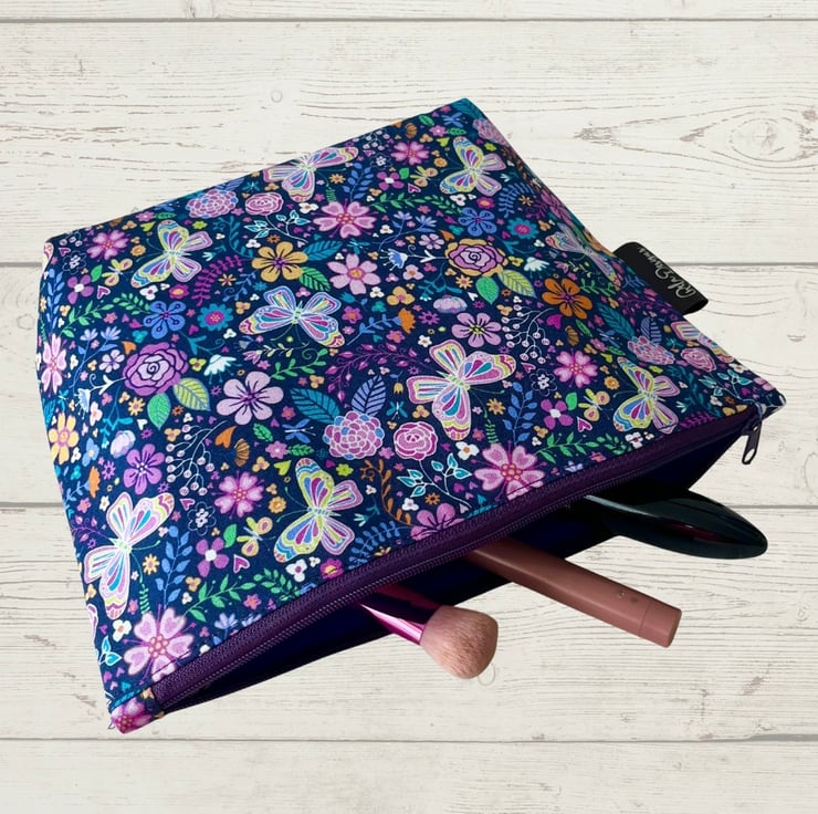 Add some colour to your everyday essentials with this charming zipped pouch, featuring a lovely butterfly print.