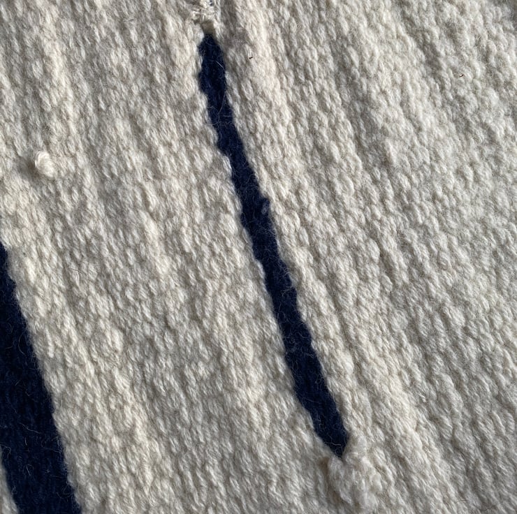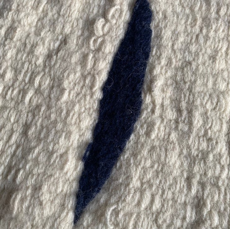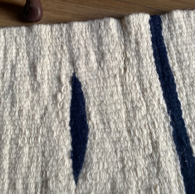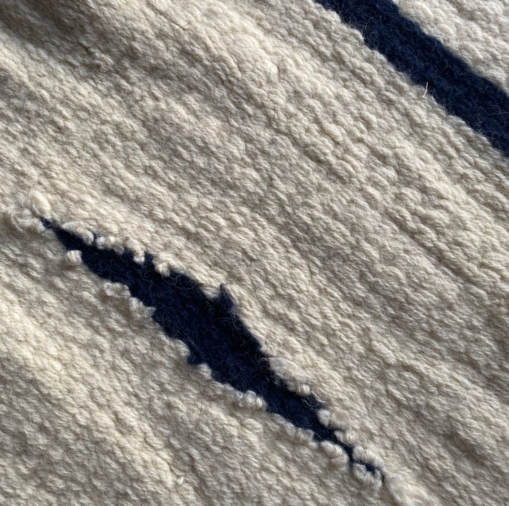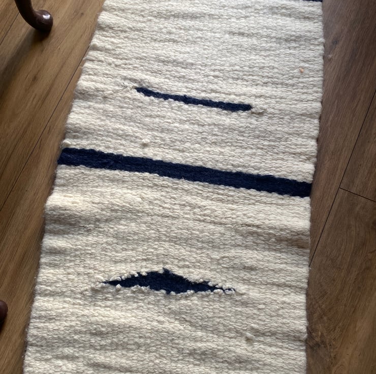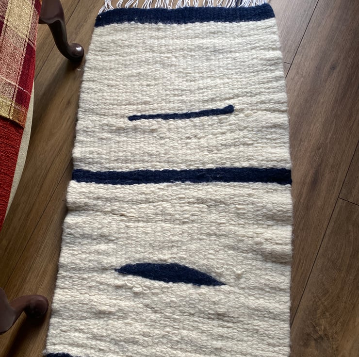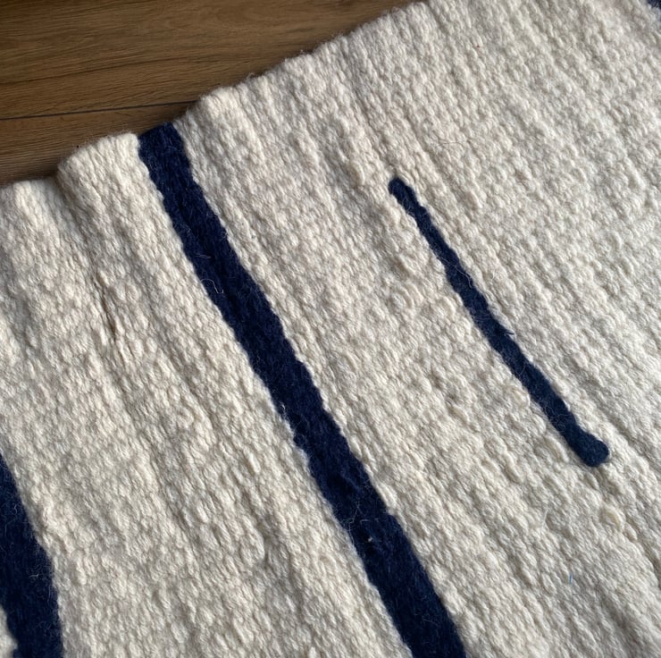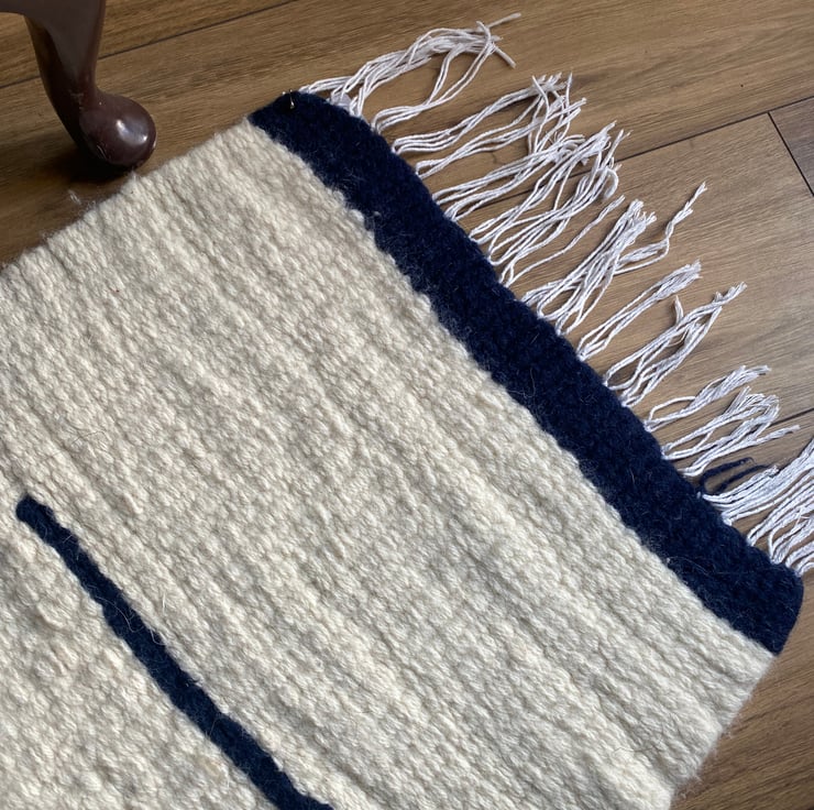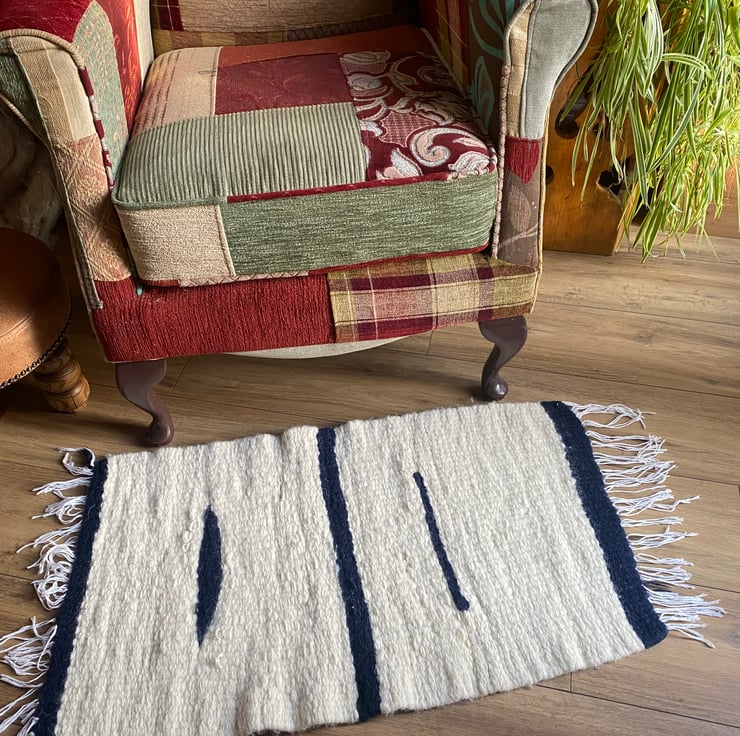 This is a lovely cream and navy blue wool rug made from the wool of the Cheviot sheep, native to Britain.