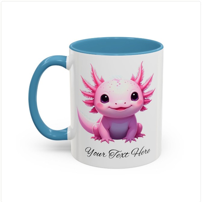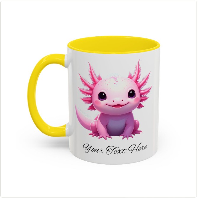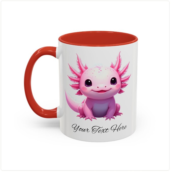Small, joyful mornings made sweeter — this two-tone 11oz ceramic mug brings a playful, hand-painted creature to your daily coffee ritual. The glossy white exterior showcases a bright, pink axolotl-like character with soft pink frills and expressive eyes, while the interior and handle come in a coordinating accent color. It feels light in the hand, warm to hold, and the C-shaped handle gives a comfortable grip for slow sips or hurried commutes. Let it live on your desk, shelf, or kitchen counter as a cheery companion during cozy reading sessions, creative work bursts, or crisp autumn mornings.