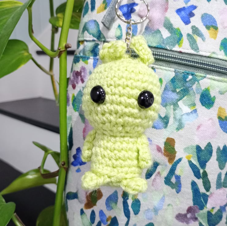 Meet Al the adorable green alien, he enjoys hanging around on bags - he's also pretty accomplished at minding those keys.