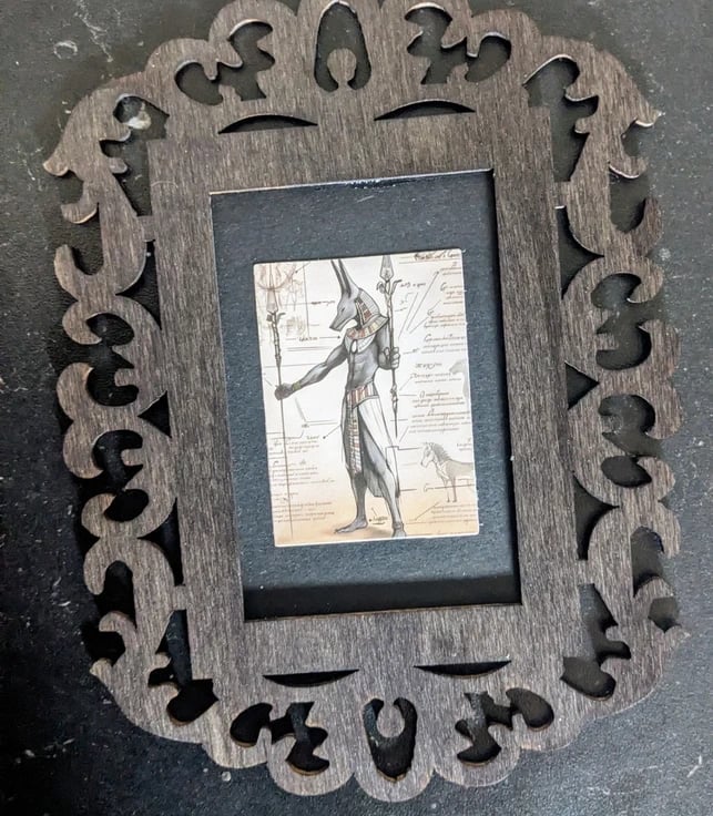 Bring the ancient mysteries of Egypt into your home with this striking Anubis framed print. Featuring original artwork by Kate and Fate, this piece combines classic mythology with a dark, gothic aesthetic, perfectly presented in a traditional wooden frame.