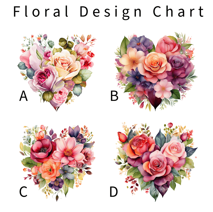 Choose from 4 beautiful floral designs, see floral design chart image.