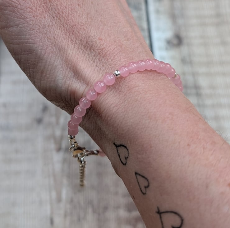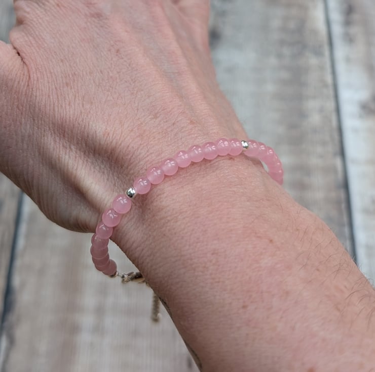 Gorgeous bracelet made from Rose Quartz gemstone beads and recycled Sterling Silver beads and fittings.