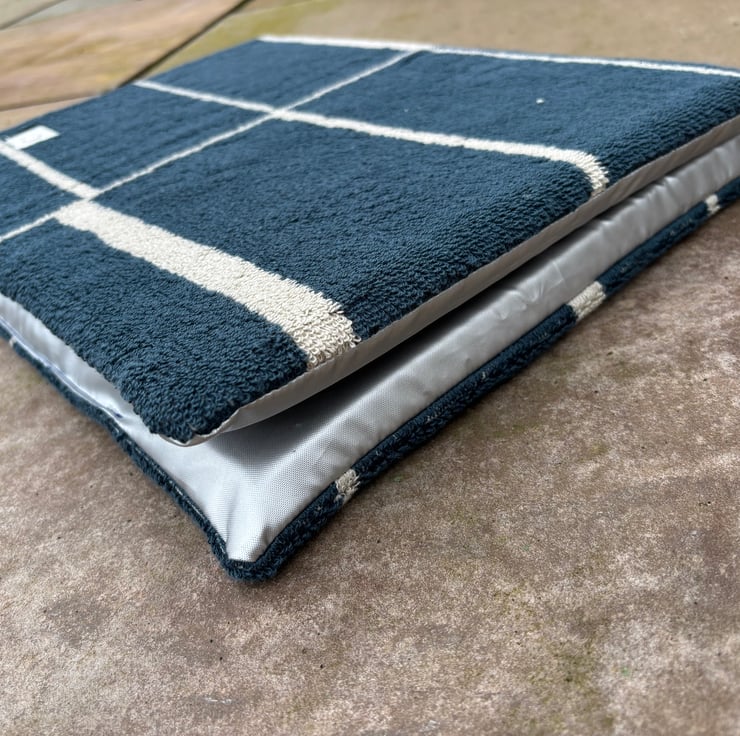 The Toasty Toes deluxe mat has a layer of foam encased in waterproof fabric then topped off with soft, absorbent towelling.