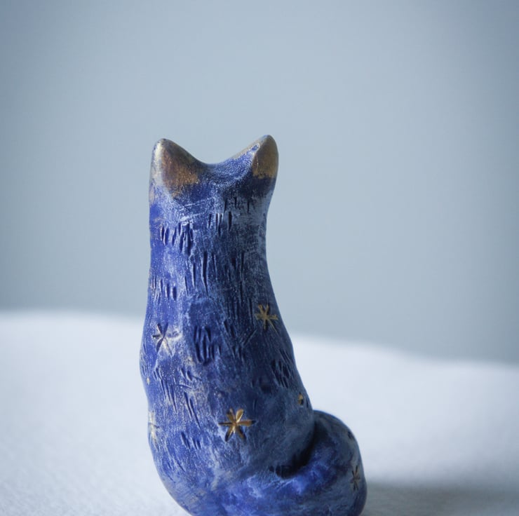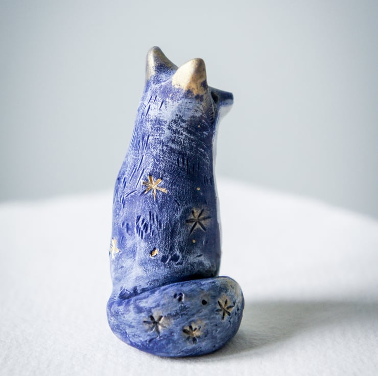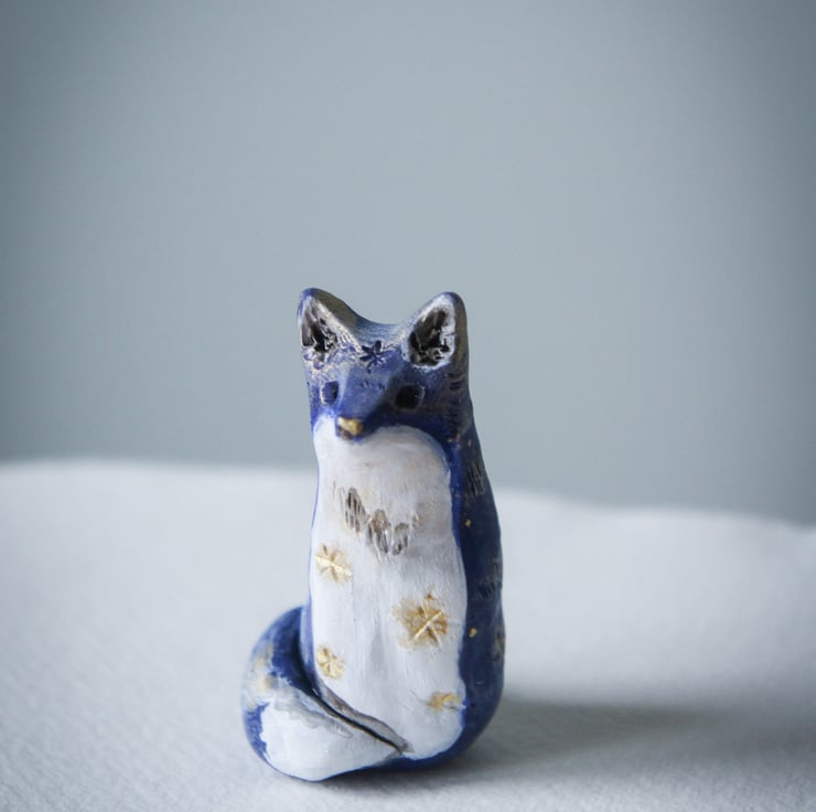 A small hand sculpted one of a kind blue and gold fox. Hand sculpted and painted. This is the exact sculpture you will receive. 5.5cm in height.