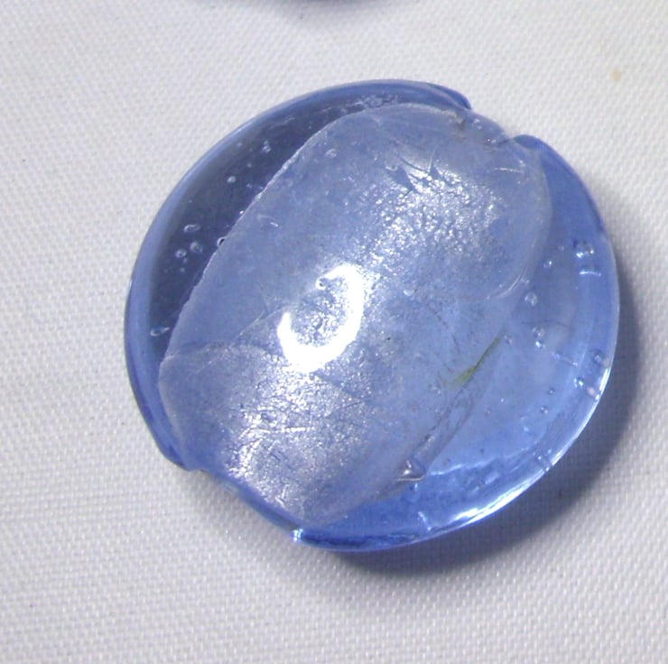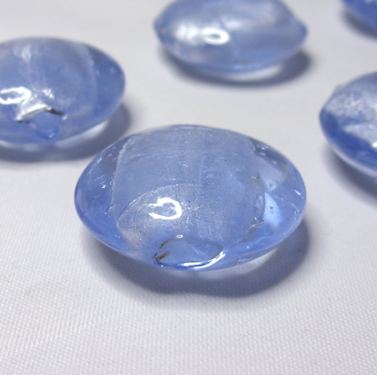 This is a packet of 6 large cushion beads, pale blue glass lined with silver foil.