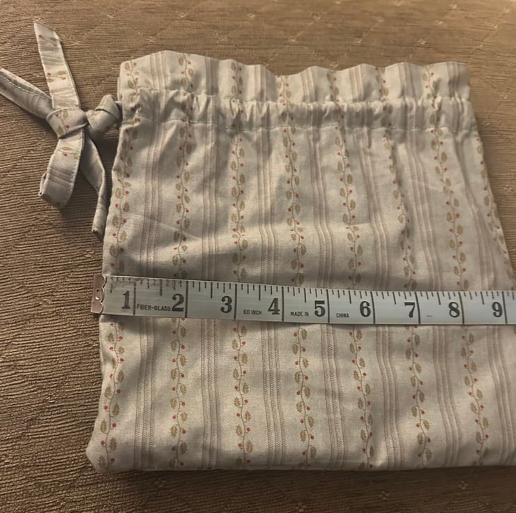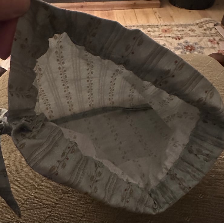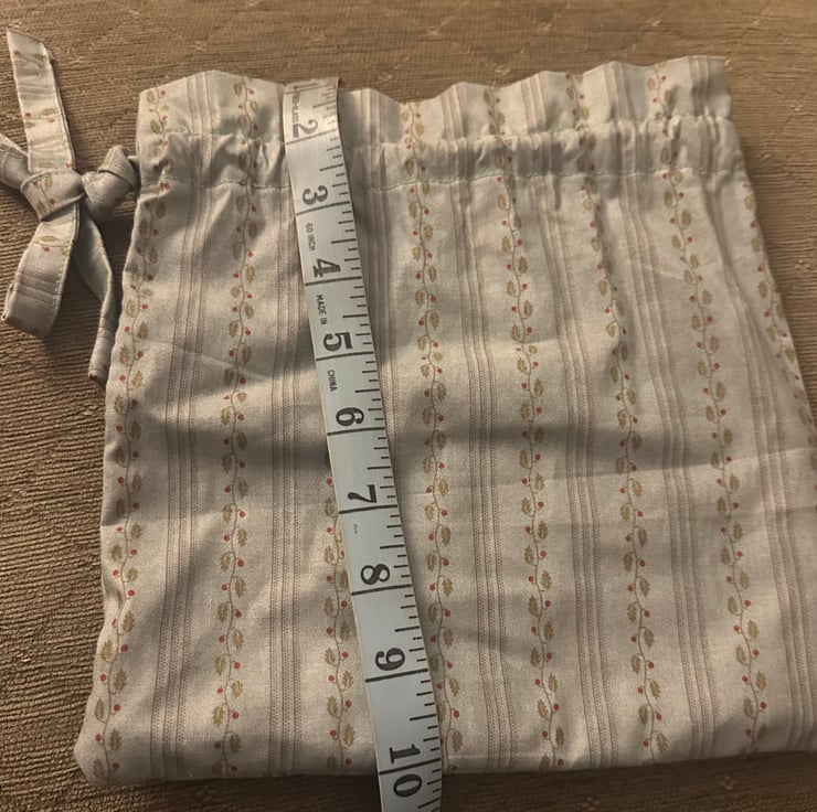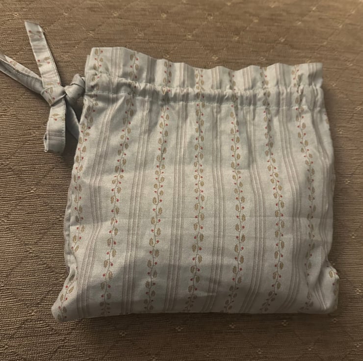 My simple cotton drawstring bag was inspired by bags from the Regency era.