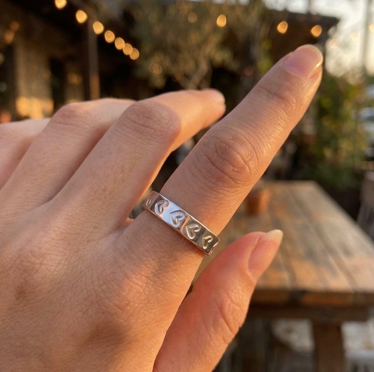 A symbol of love and friendship with this solid 925 sterling silver heart ring, available in a hammered or smooth finish. Handcrafted with care, this 4mm wide ring is a beautiful representation of artisan craftsmanship. Weather your looking for a thoughtful friendship ring or a meaningful gift for a loved one, this piece is designed to be both elegant and timeless.