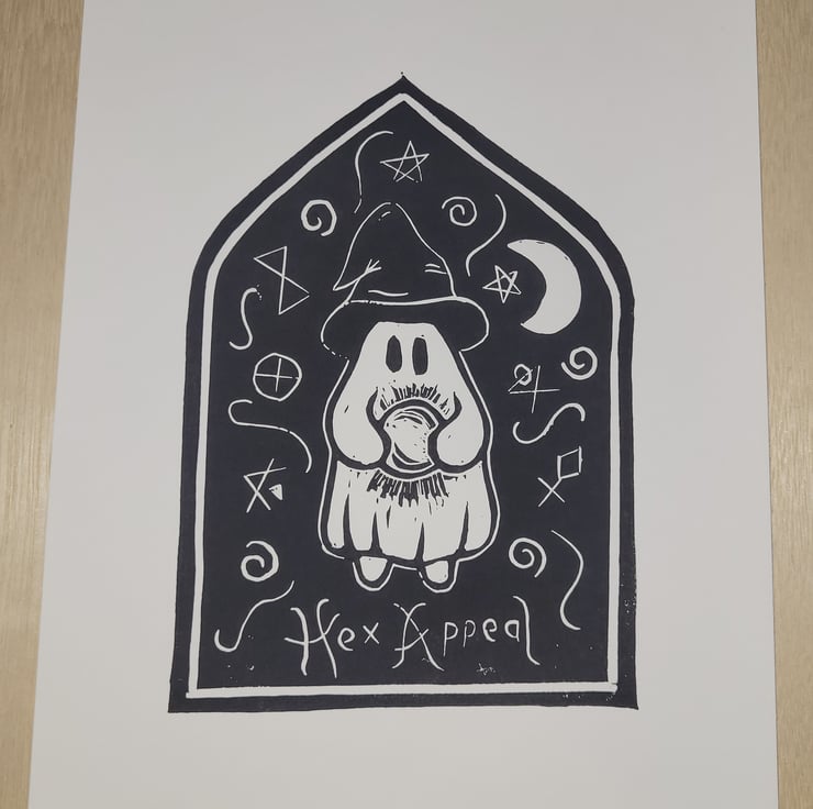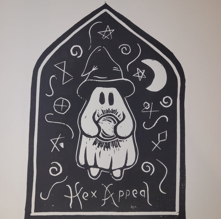 Part of my original ghost themed prints, I originally created Hex Appeal after being inspired by some clay ghosts I made with a friend. We gave them little personalities and a life after death. Hex Appeal is a big fan of the craft. Light as a feather, stiff as a board.
