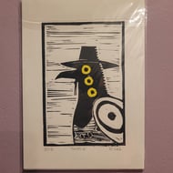 Purl-tergeist was the last ghost I drew in the Hobbies in the Afterlife collection and is based on my love of yarn-craft! Inspired by some ethereal clay creations made by a friend, this hand-drawn, hand-carved, and hand-printed by me in my attic studio in Sheffield.