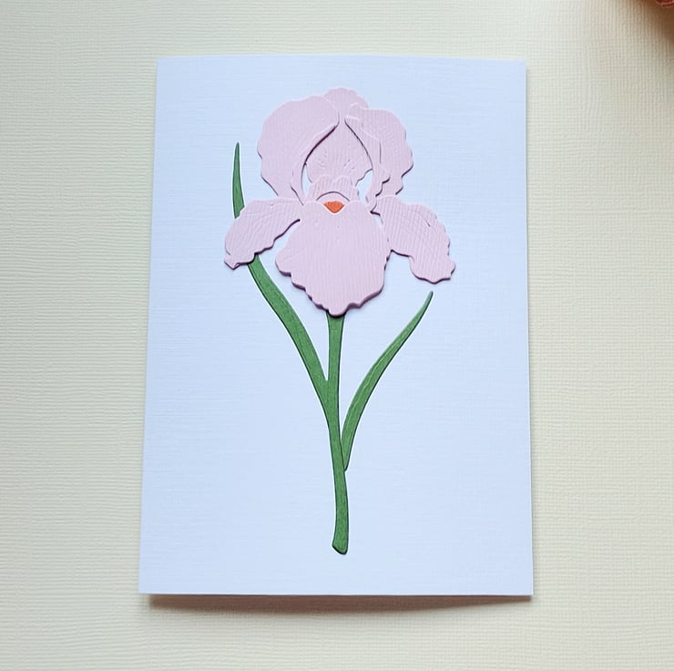 Pink Paper Iris - Flower Shop Moments, Blank Handmade Floral Card