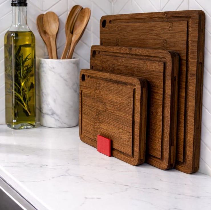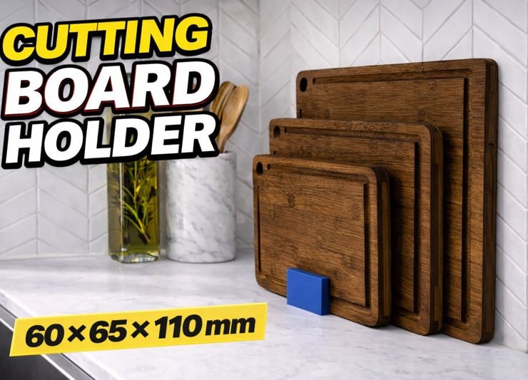 Keep your kitchen worktop tidy and your chopping boards neatly organised with this handmade 3D printed cutting board holder. Designed to store multiple boards upright, it helps improve airflow for drying while keeping boards easy to access and safely separated.