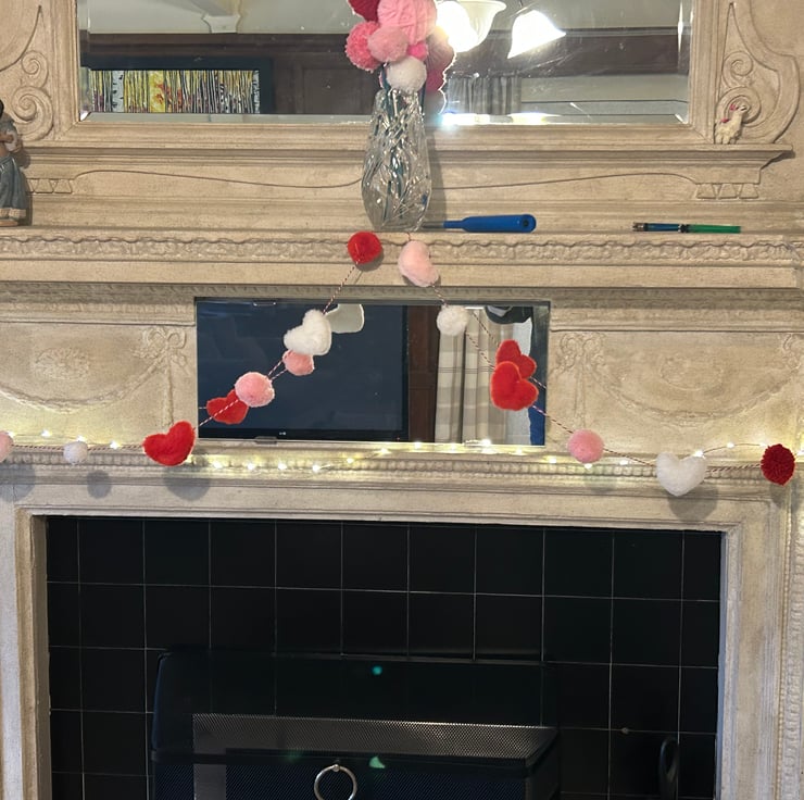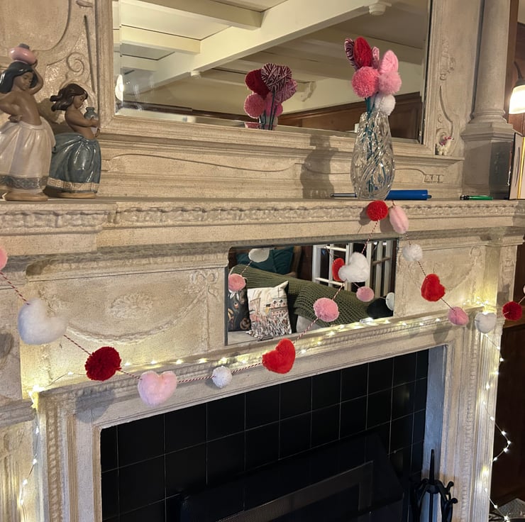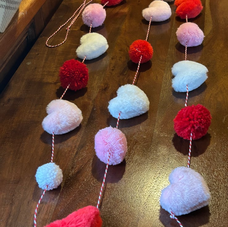 Handmade Heart & Pompom Garland - Valentine Romantic Cottage Core