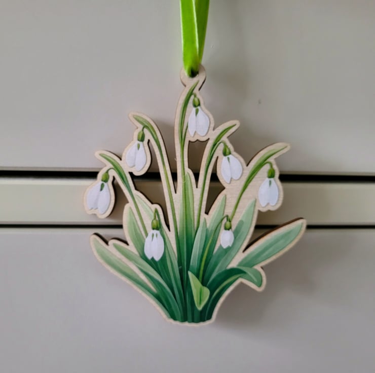 This beautiful wooden Snowdrop hanging decoration is a lovely home decor piece which you can hang from a peg rail, picture frame, drawer or door handle.