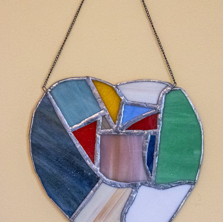 Multicoloured heart light-catcher made in copper foiled stained glass technique