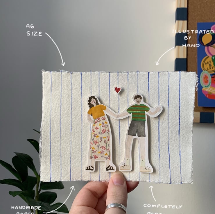 Each one is illustrated by hand down to the smallest details to truly capture each personal aspect - mounted onto handmade paper for the finished look
