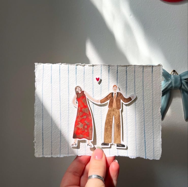The portrait will be custom made to specifically look like you and your fave in a specific outfit for a more personal touch, whether that be a wedding dress or your fave date night outfit!