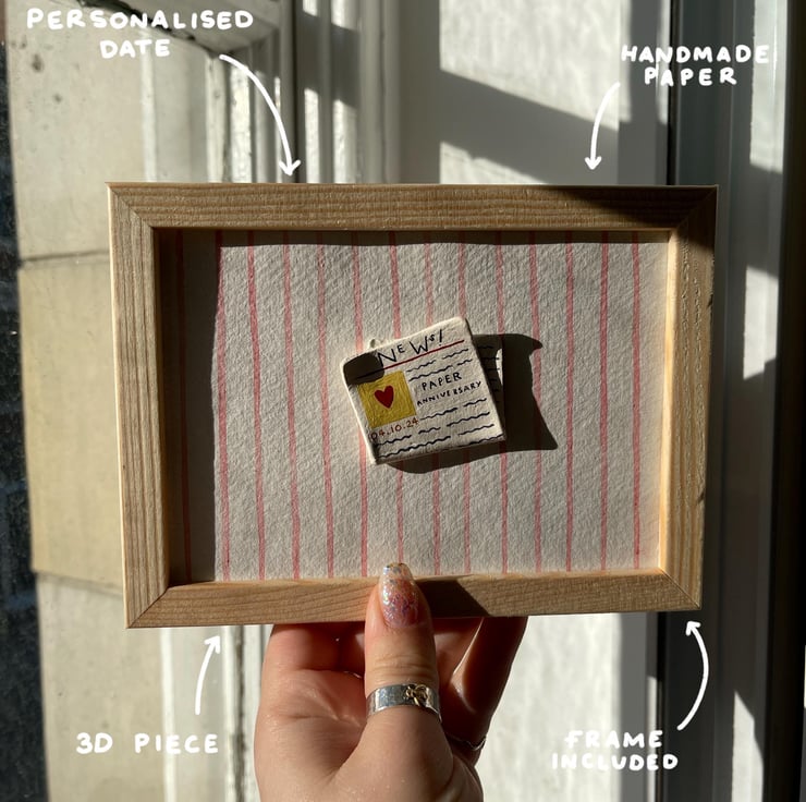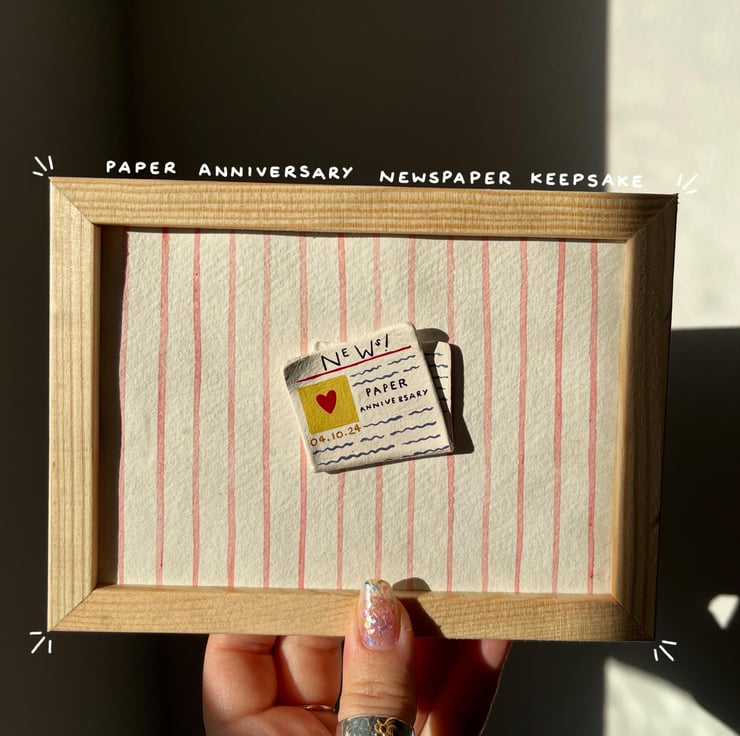 Handmade Paper Anniversary Newspaper Keepsake Framed Wedding Gift