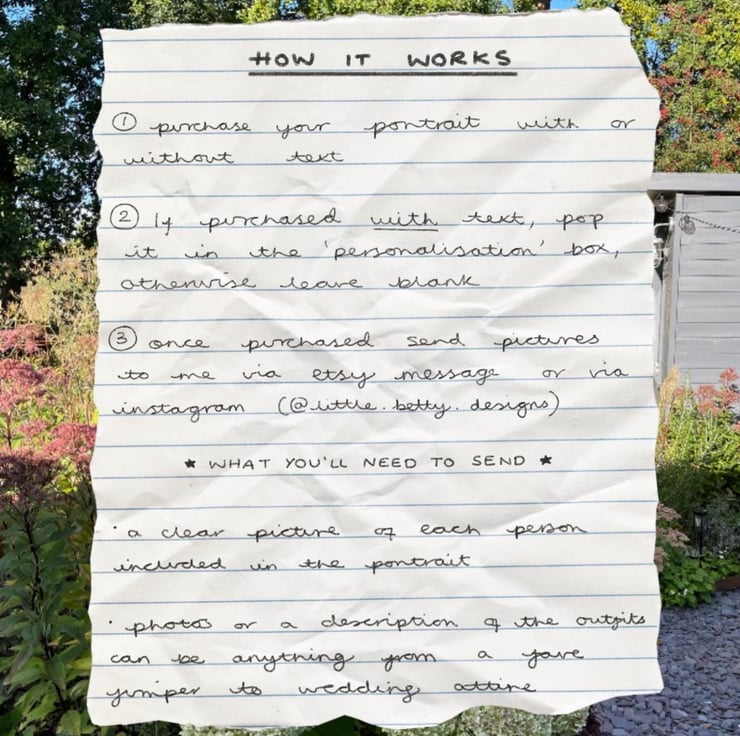 ✨For personalised Illustrations please send photos to me via instagram @little.betty.designs ✨