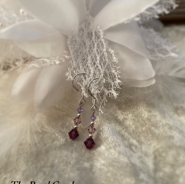 These earrings are simple but pretty design with Swarovski Crystal beads. The ear wire is sterling silver 925.The motif is about 17mm long. These pretty earrings are for any occasion.
