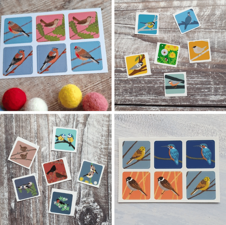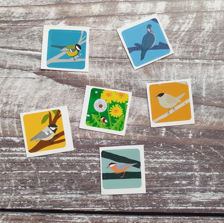 Each set contains 4 themed envelope sticker sheets with a mix of birds, each sheet with six square mini stickers making 24 mini stickers in total. They are the perfect size to stick on greeting card envelopes, letters or journals and make them extra special.