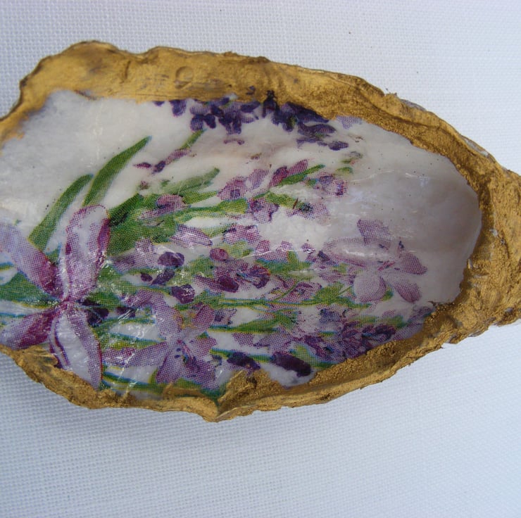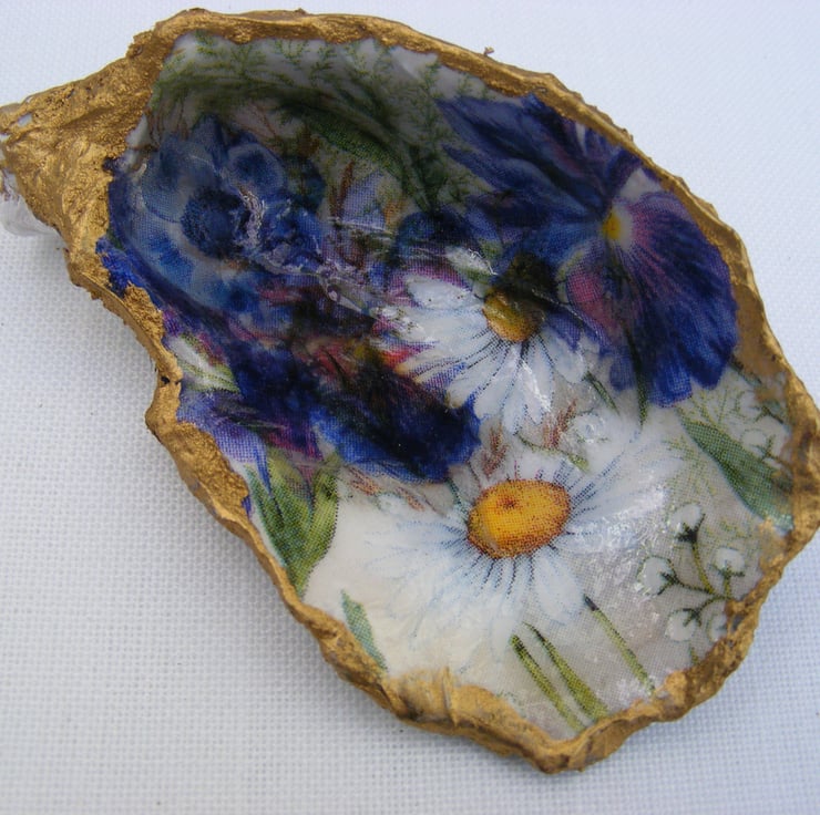 Set of 4 Decoupaged Oyster shell trinket dishes