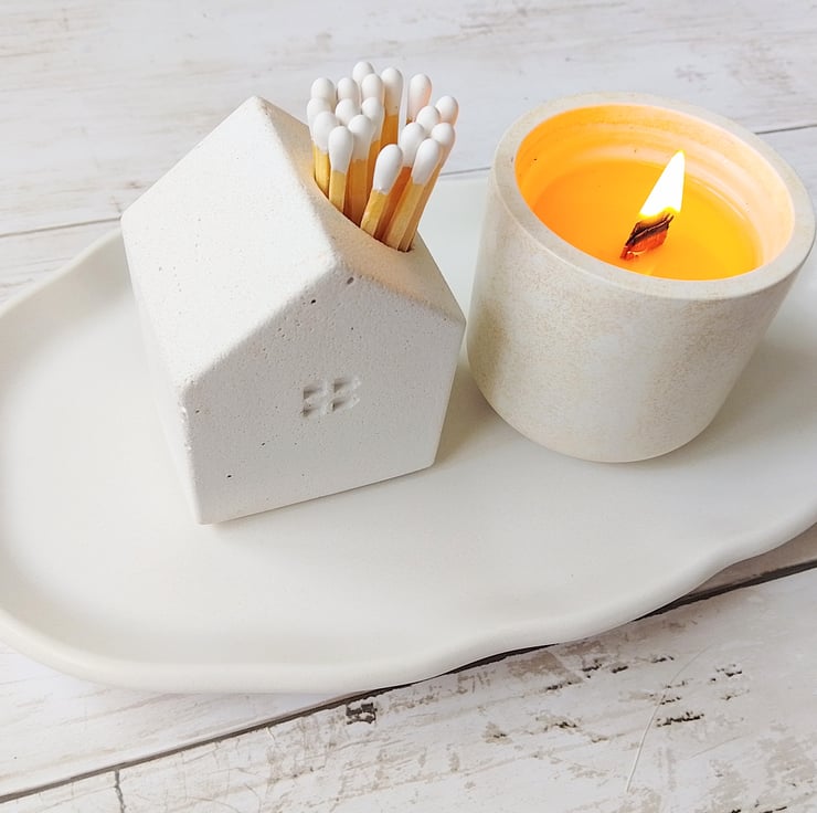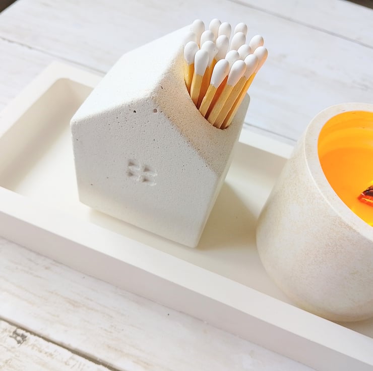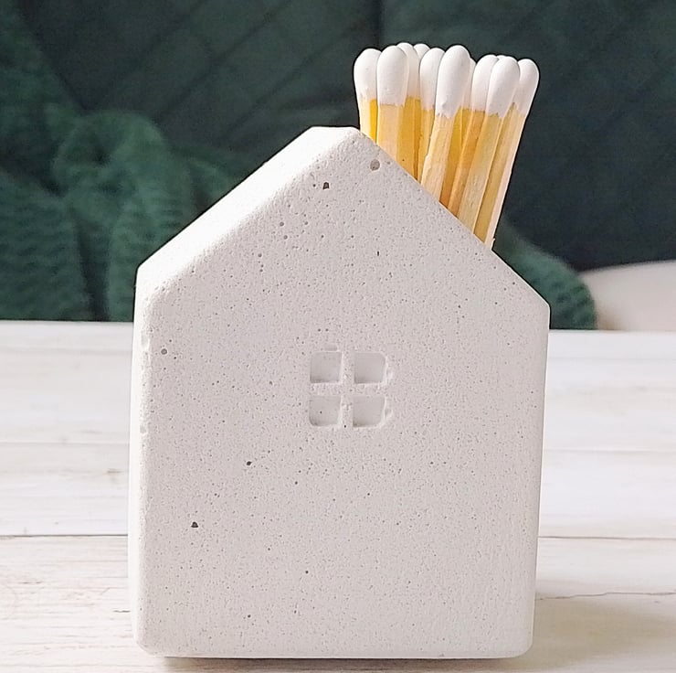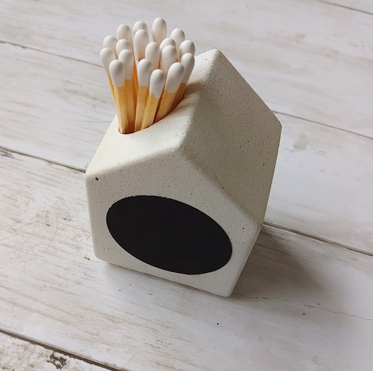 It comes with a patch of striker paper on the back, one spare, 23 long matches and one refill. The inside is painted with heat-resistant black, so once you strike your match, you can drop it back in — headfirst, safely — without hunting for a bin or leaving a trail of ash across your shelf. Because even your spent sparks deserve somewhere clever to land.