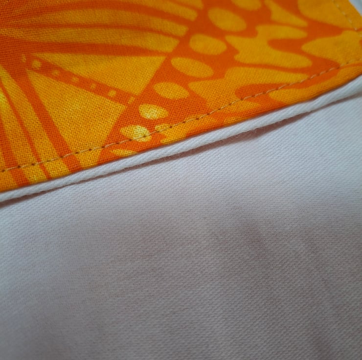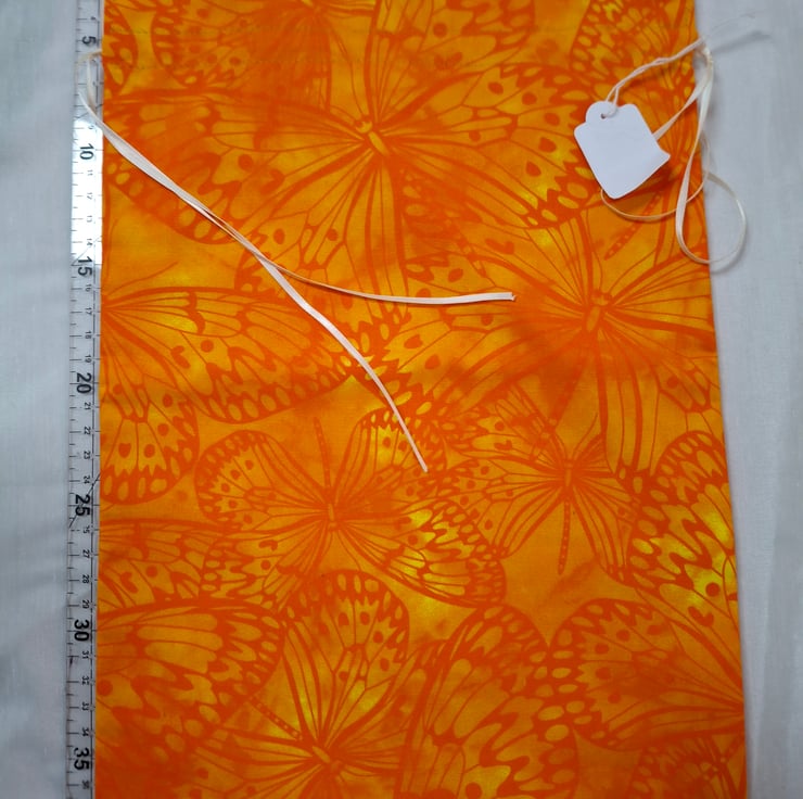 Made from 100% cotton, the vibrant butterfly print features warm mango tones of orange and yellow.