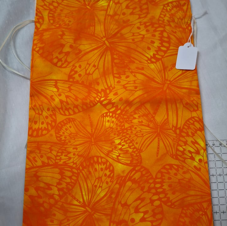 This handmade drawstring bag has been created from Fabric Freedom Butterfly Print Melody fabric