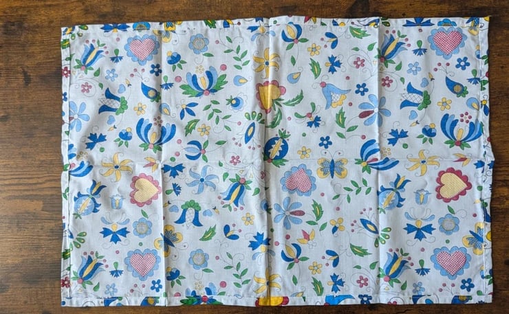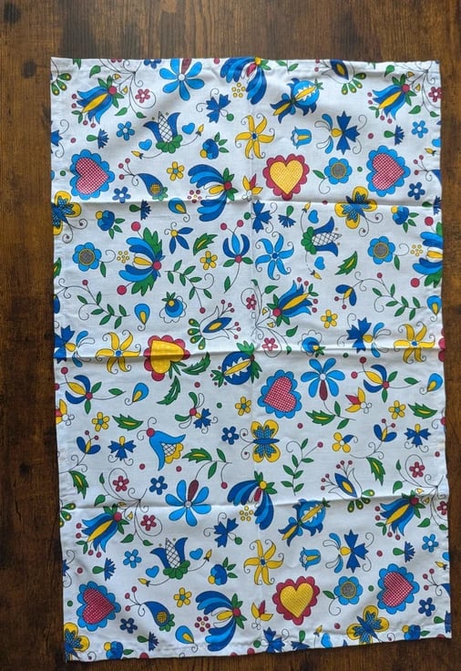 Vintage Folk Floral Tea Towel – White Kashubian Print – Traditional Dish Cloth