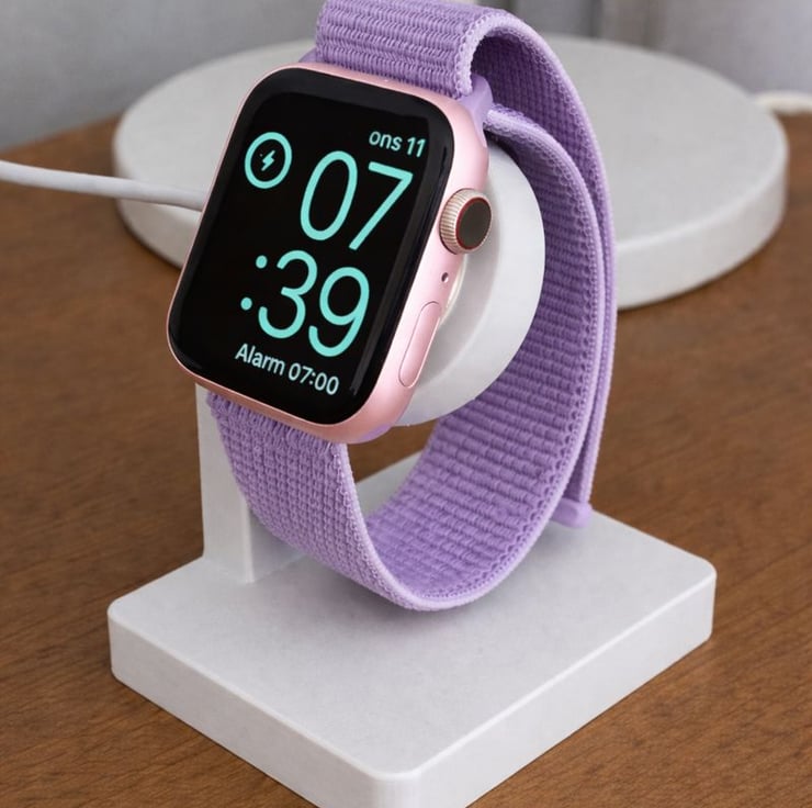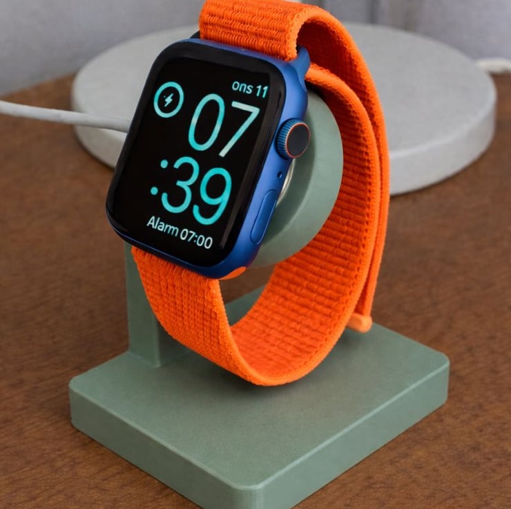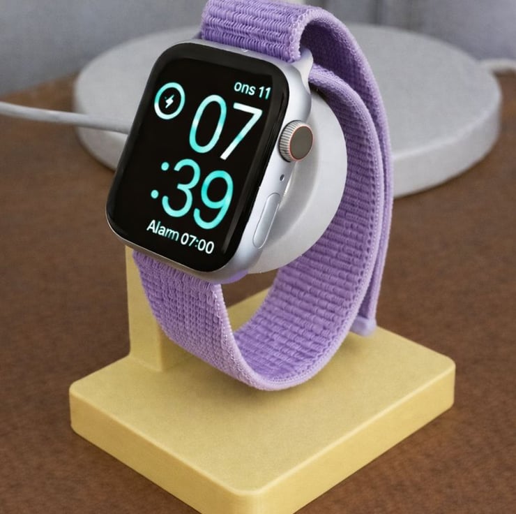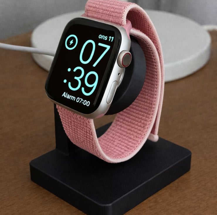 A simple, stylish, and functional handmade stand designed to keep your smartwatch secure and easily visible while charging.