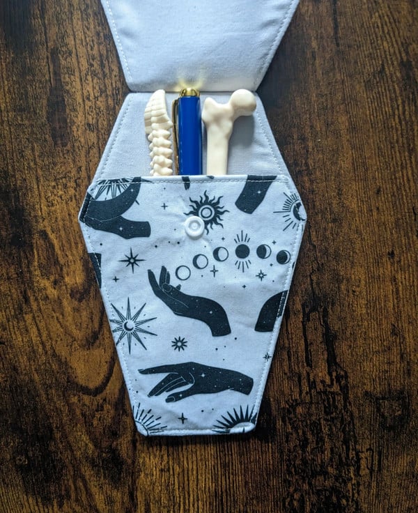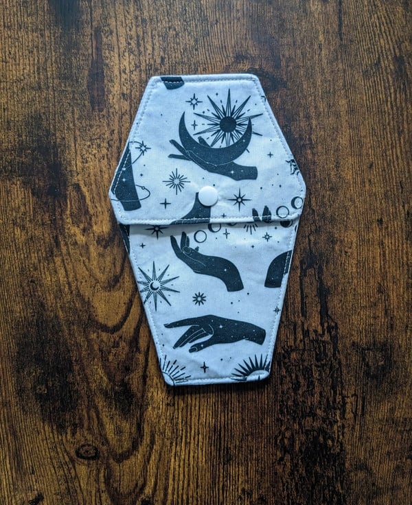 Celestial Coffin Case – Hand of Fate Pouch – Gothic Stationery & Glasses Holder