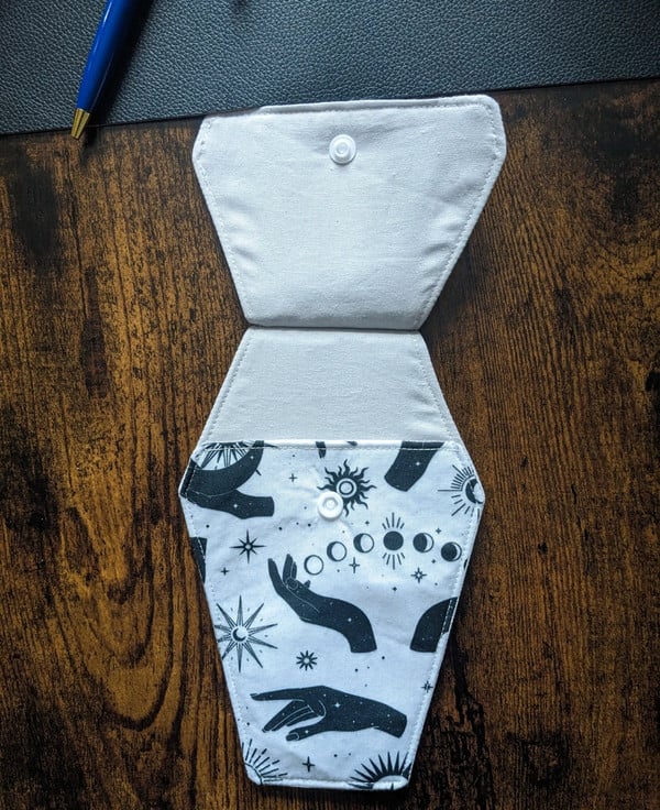 Unique Coffin Shape: Carefully hand-sewn into a classic coffin silhouette, perfect for fans of gothic or witchy aesthetics.