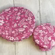 These food bowl covers will look great whilst keeping food fresh and helping to reduce usage of cling film and plastic bags. They are ideal for covering bowls of leftovers in the fridge, keeping flies off salads before serving, covering thawing food or for keeping rising bread dough cosy. They are made from attractive cotton lined with pink PUL – a waterproof and breathable fabric, safe for food use (more details below). The elastic hem holds the cover securely on your chosen bowl. They can be used in the fridge or freezer but not the microwave. If soiled, the lining can be wiped clean or the whole cover can be washed in the washing machine and air dried - much easier and more hygienic than beeswax wraps.