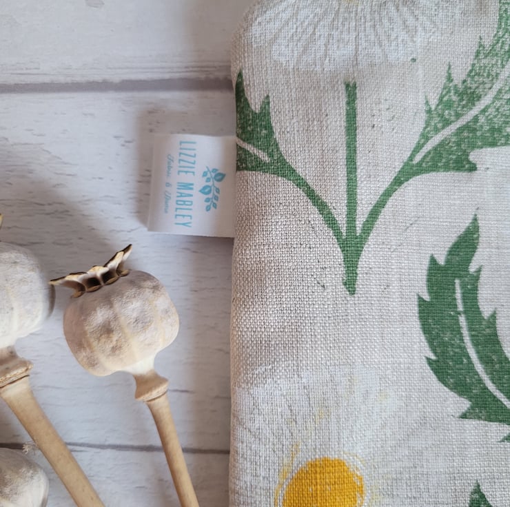 Hand printed linen, lined in cotton and padded with a luxurious cotton/bamboo wadding.